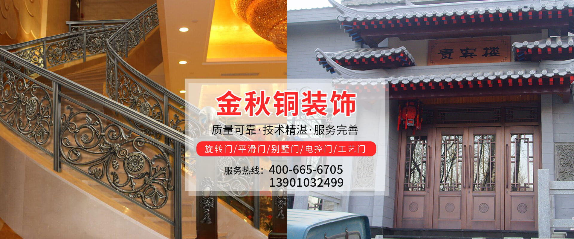 北京金秋銅裝飾材料有限公司是專業(yè)生產(chǎn)銅裝飾材料及設(shè)計、開發(fā)、制造、施工、售后服務(wù)為一體的大型綜合企業(yè)??沙薪咏ㄖ~裝飾工程及五星級酒店、別墅、博物館、樓樘管所等高檔銅裝飾項目;生產(chǎn)各種規(guī)格的旋轉(zhuǎn)門、平滑門、別墅門、電控門、工藝門、旋轉(zhuǎn)護欄、屋頂銅飾防水瓦、浮雕壁畫......